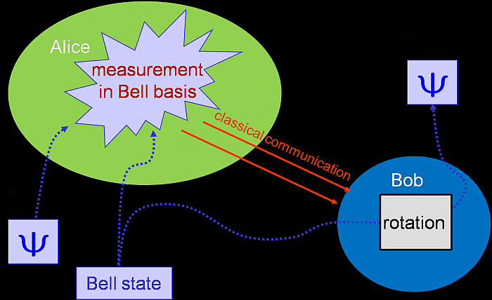Schematic of the teleportation of a quantum state.